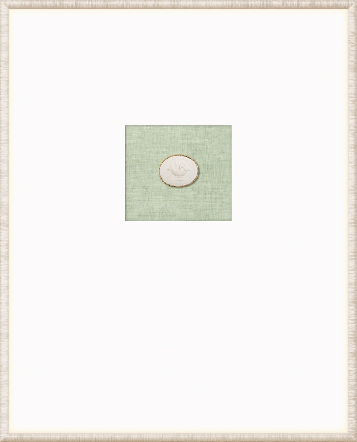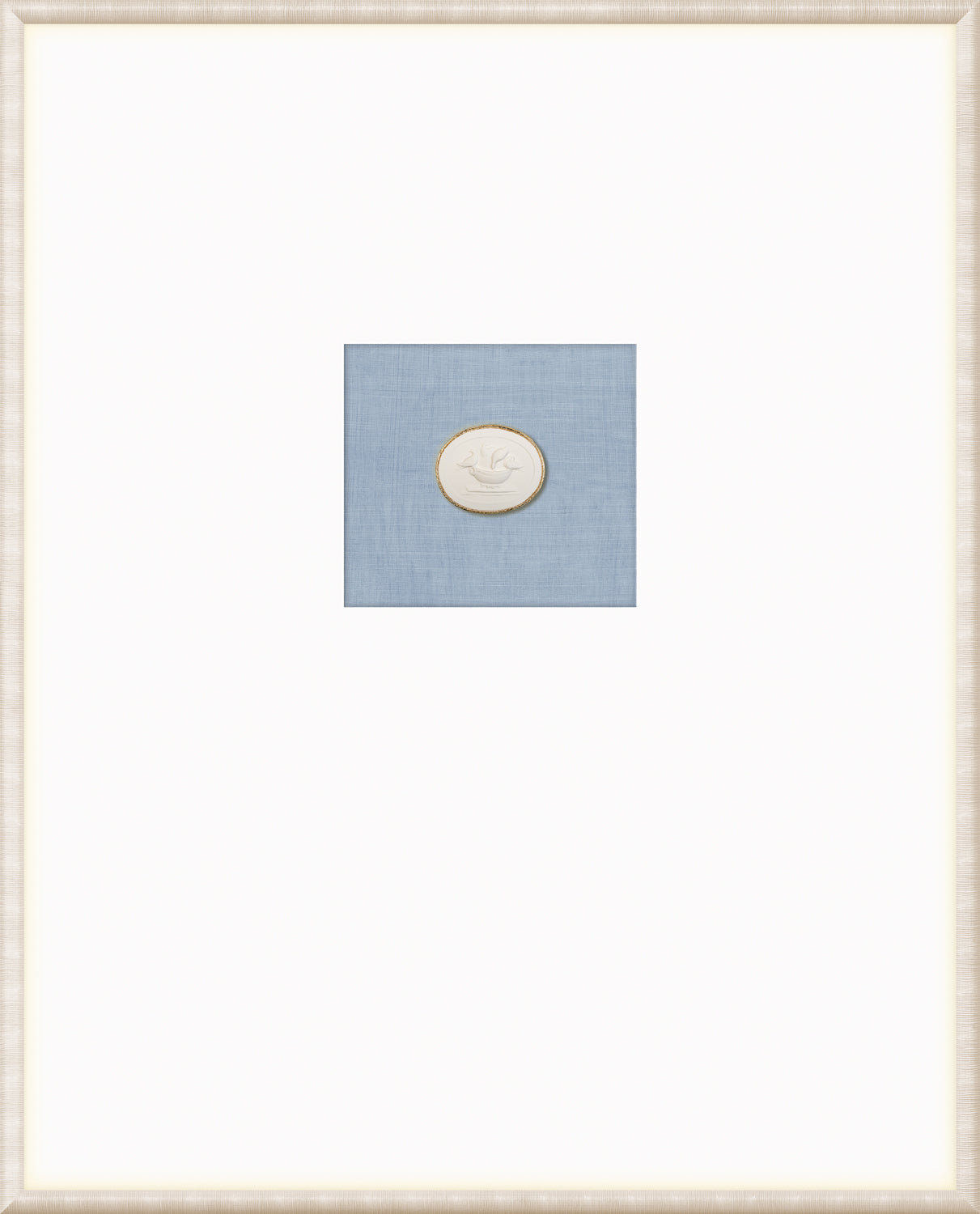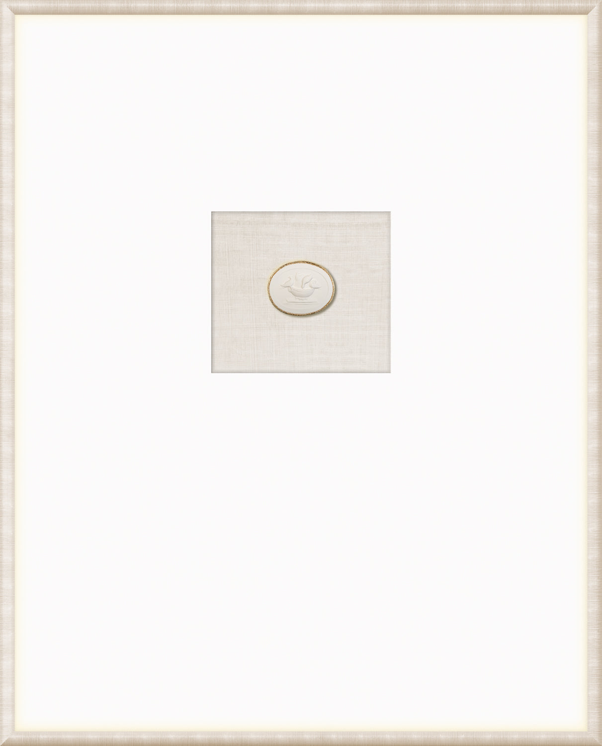 Our collection of Intaglios features both mythological and historical figures. Each one is hand-cast and gilded with fine gold filigree along the upper edge, framing the carved images and making them truly unique pieces. Each grouping is mounted on a linen texture background in a variety of colour options. They are framed in a light, neutral-toned moulding with a striated texture and a wide, raised matte with gilded framespace, giving them even more elegance and luxury. With our wide variety of arrangements and different combinations of Intaglios, you’re sure to find the perfect groupings for you.